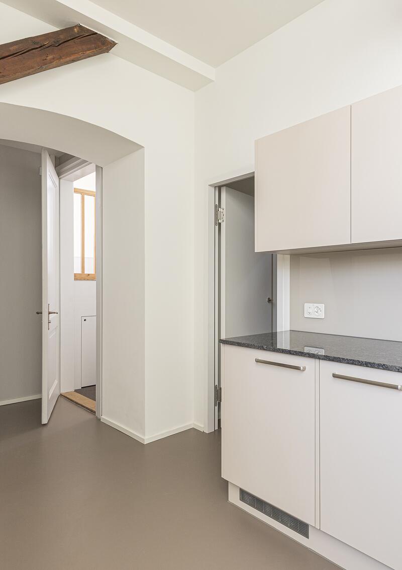 Historische Struktur und zeitgemässe Eingriffe treten in ein ausgewogenes Verhältnis, ohne sich gegenseitig zu überlagern.