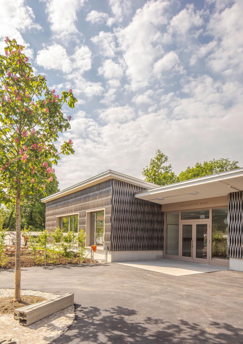 Die Wohnüberbauung im Limmatfeld umfasst drei Baukörper mit insgesamt 45 Wohnungen. Ein gemeinsamer Innenhof schafft Raum für Begegnung und Aufenthalt.